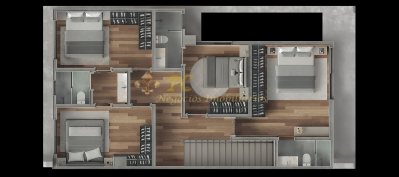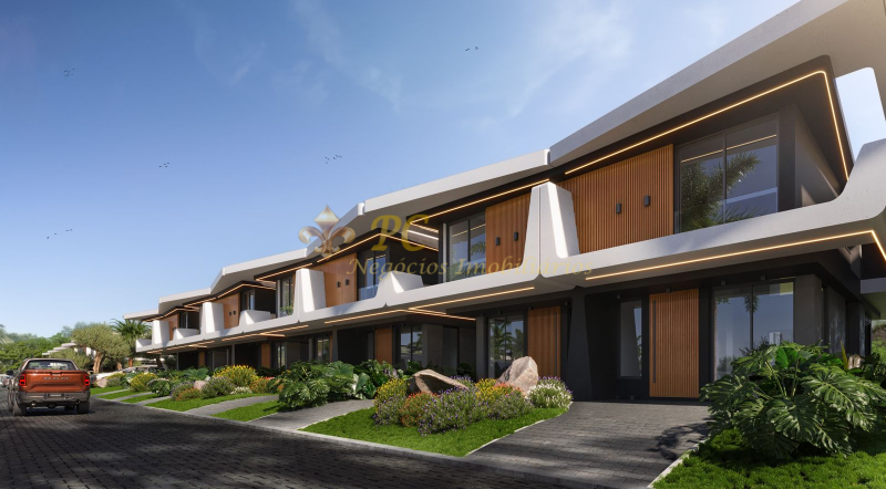 Os sobrados terão área privativa de 155 m², mais 35 m² de pátio. Serão compostos por quatro suítes, sendo uma principal na frente da casa, uma lateral e duas suítes americanas que compartilham banheiro. Contarão com duas vagas de garagem (uma na rampa e outra em frente à casa), corredor lateral de 3 metros entre as casas espelhadas, acesso da sala ao pátio e ao corredor lateral e espera para piscina em todas as unidades.
