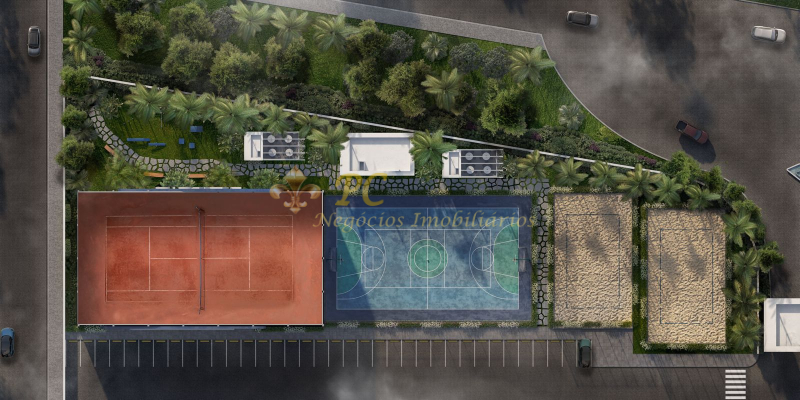 Academia, Piscina Térmica Coberta, Praia Artificial, Quadra esportes, Quadra de Tênis, Espaço Gourmet, Espaço Kids, Murado, Brinquedoteca, Portaria, Portaria 24h, Pergolado, Salão de Festas, Conveniência, Sala de Jogos, Sala de TV,