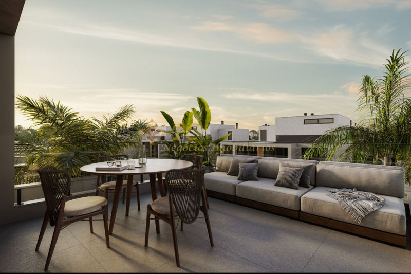 Casas com até 3 suítes e pátio privativo, plantas de 170m² a 245m², com ou sem rooftop.