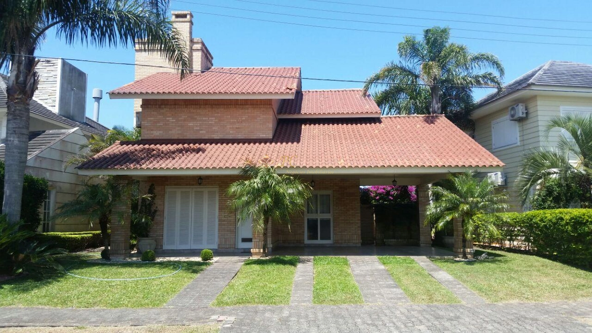 Casa em condomínio fechado na praia de Atlântida, com 4 dormitórios, sendo 01 suíte, piscina de frente para o lago, living 03 ambientes, cozinha, área de serviço, lareira, ar condicionado, piscina, acomoda de 08 a 09 pessoas.