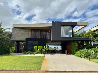 Sobrado de esquina, finamente mobiliado e decorado e com a melhor orientação solar,, composto por 05 amplas suítes sendo 1 máster com hidro e 1 térrea, living em 3 ambientes com lareira, lavabo, cozinha fechada, espaço gourmet com churrasqueira, Home office, terraço com vista para o lago e pôr do sol, lavanderia, piscina em concreto e abrigo para 2 carros.