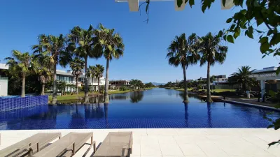 Sobrado beira lago no condomínio Riviera, com 6 suítes individuais, 8 banheiros, lavabo, sala de estar, sala de jantar, cozinha Americana, lavanderia, dependência com banheiro completo, garagem para 02 veículos, piscina com cascata e aquecimento, chuveiro externo para piscina, sistema de irrigação do jardim, mobiliado. 360m2 área total e 182,10m2 área construída