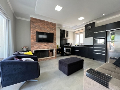 Sobrado no Condomínio Las Palmas, no pavimento térreo é composto de 3 dormitórios, sendo 1 suíte, living em 3 ambientes, cozinha completa. O segundo pavimento conta com terraço, e é composto de 2 dormitórios, sendo 1 suíte, banheiro social, living integrado com lareira, cozinha completa. Também no pavimento térreo, possui um salão de festas de uso comum, com churrasqueira e banheiro auxiliar. 249,00 m² privativo 269,98 m² total