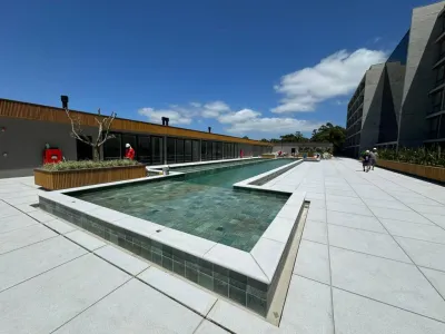 Apartamento no Centro de Atlântida, Edifício com infraestrutura completa, com 1 dormitório, living integrado em 2 ambientes, cozinha americana, churrasqueira, área de serviço, mobiliado e decorado. box para carro!
