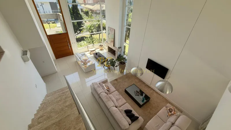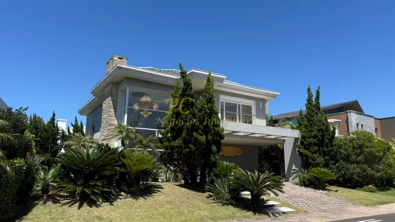 Sobrado no Condomínio Las Dunas com 05 suítes, sendo uma térrea e a master com closet e banheira, Lavabo, Amplo living com 4 ambientes (sala de estar com lareira, jantar, sala de jogos e e sala de TV, Cozinha gourmet com churrasqueira, Área de serviço, Dependência de empregada completa, Abrigo para dois carros, Piscina em concreto, 300m² de área privativa (fora áreas externas como sacadas e abrigo), 517,95m²área de terreno.