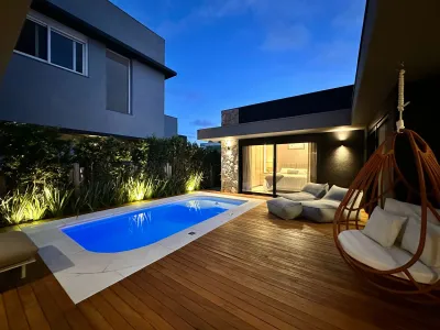 Churrasqueira, Lareira, Lavabo, Lavanderia, Mobiliado, Área de Serviço, Academia, Jardim, Piscina, Playground, Salão de Festas, Portaria, Quadra Esportiva, Ar Condicionado, Cerca Elétrica, Laje de Concreto, Sala de Jogos, Alvenaria, Móveis sob medida, Próximo ao Centro, Próximo a escola, Próximo a posto de saúde, Posição Norte, Terreno Plano, Piso Porcelanato, Água Quente, Acabamento em gesso, Sala de TV, Sala de Jantar, Cozinha, Próximo ao Mar,