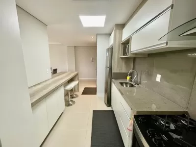 Churrasqueira, Lavanderia, Mobiliado, Sacada, Área de Serviço, Academia, Elevador, Piscina, Playground, Salão de Festas, Portaria, Zelador, Ar Condicionado, Box, Cerca Elétrica, Laje de Concreto, Sala de Jogos, Alvenaria, Móveis sob medida, Próximo ao Centro, Próximo a escola, Próximo a posto de saúde, Posição Sul, Piso Porcelanato, Água Quente, Acabamento em gesso, Sala de Estar, Cozinha, Próximo ao Mar,