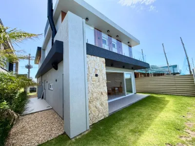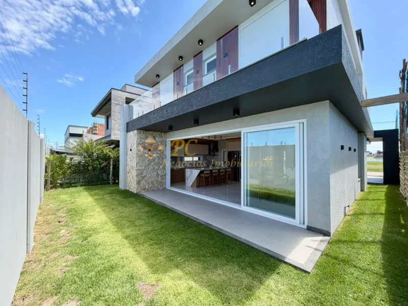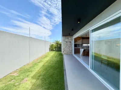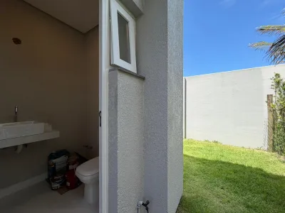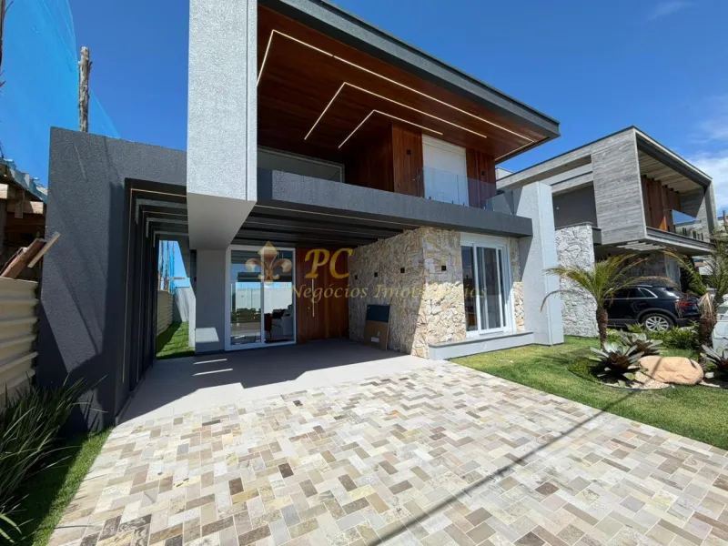 Composta de 4 suites, sendo 3 no piso superior e 1 no térreo, 1 cômodo adicional no piso superior que pode ser um escritório ou closet, living integrado com estar, jantar e cozinha, lavabo + banheiro externo, lavanderia e abrigo para carros. Aberturas em PVC e " ESPERA " para piscina, placas solares e tomadas para carro elétrico.