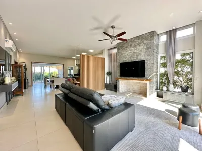 Churrasqueira, Lareira, Lavabo, Mobiliado, Área de Serviço, Jardim, Ar Condicionado, Laje de Concreto, Alvenaria, Móveis sob medida, Terreno Plano, Piso Porcelanato, Água Quente, Acabamento em gesso, Sala de TV, Sala de Estar, Sala de Jantar, Cozinha,