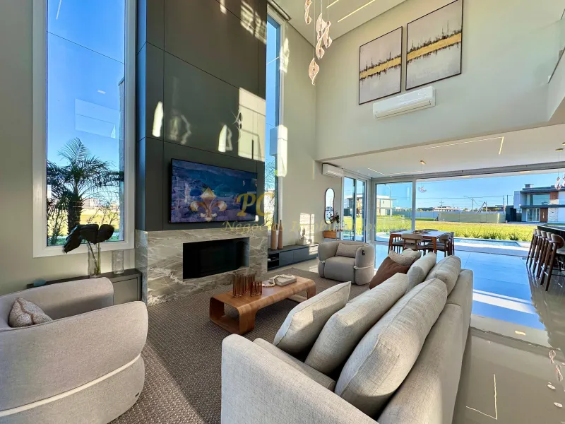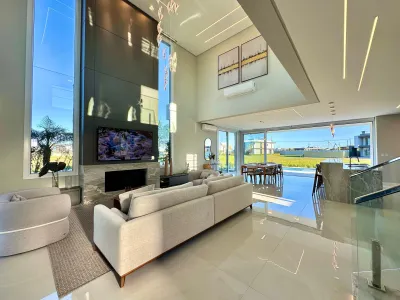 Belíssimo sobrado com excepcional vista e espaços para contemplar os lagos, 04 dormitórios todos suítes ( uma térrea ) e 3 com sacada com vista para o LAGO, amplo living Integrado c/ lareira, cozinha americana c/ linda bancada em granito, espaço gourmet, sala de jantar com mesa de 8 lugares, sistema de automatização por Alexa.