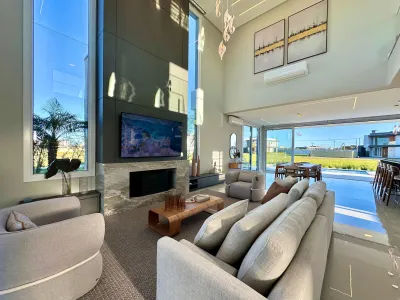 Churrasqueira, Lareira, Lavabo, Mobiliado, Sacada, Área de Serviço, Jardim, Piscina, Ar Condicionado, Laje de Concreto, Alvenaria, Móveis sob medida, Posição Norte, Terreno Plano, Piso Porcelanato, Água Quente, Acabamento em gesso, Sala de TV, Sala de Estar, Sala de Jantar, Cozinha, Terraço,
