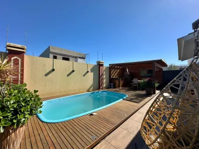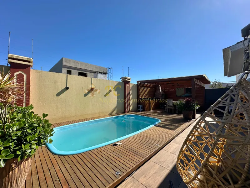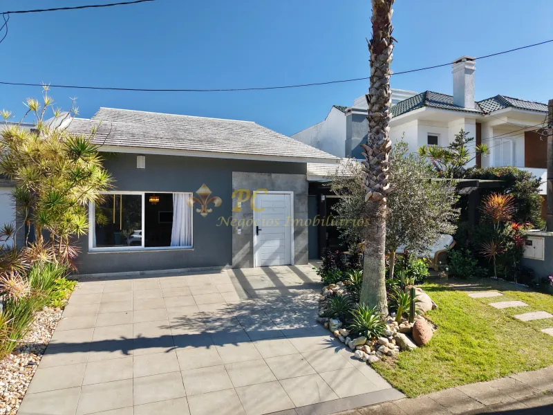 Casa térrea com 03 dormitórios sendo 01 suíte, lavabo, totalmente mobiliada e decorada, ampla sala de estar com lareira, jantar para 06 pessoas, cozinha americana, lavanderia separada, área gourmet com mesa de sinuca, piscina com deck, ambientes climatizados, jardim de inverno, orientação solar leste, 180 m² de área construída.