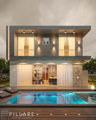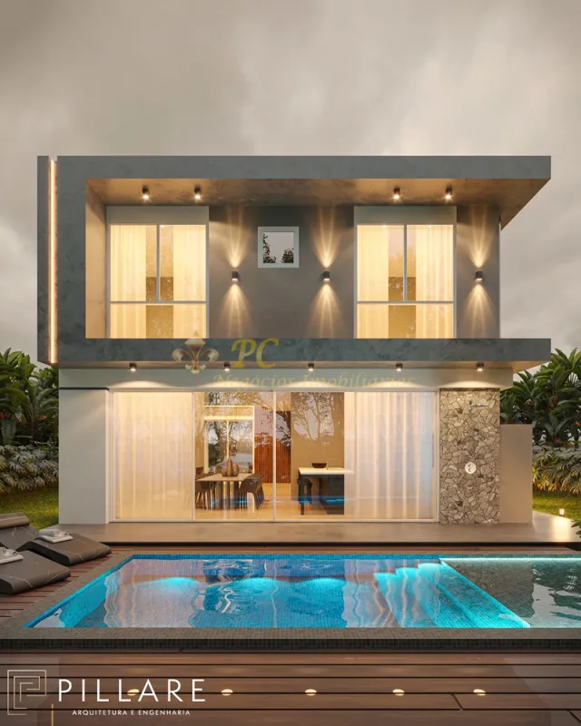 SOBRADO COM 187,00 M2 , COM 04 SUITES , LIVING INTEGRADO , PISCINA, ESQUADRIAS EM PVC, LAREIRA , CHURRASQUEIRA , FRENTE SUL.