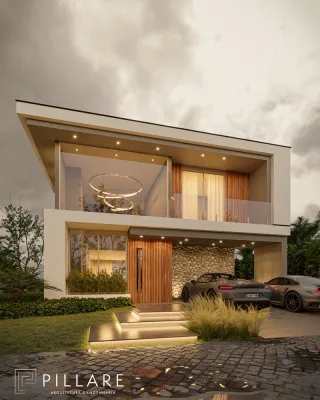sobrado beira lago, com 04 suites, living integrado, lavabo, cozinha, churrasqueira, abrigo para carro. esquadrias de madeira, frente para o sul,
