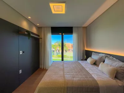 Churrasqueira, Closet, Lareira, Lavabo, Sacada, Área de Serviço, Jardim, Piscina, Ar Condicionado, Laje de Concreto, Alvenaria, Móveis sob medida, Posição Norte, Terreno Plano, Piso Porcelanato, Água Quente, Acabamento em gesso, Sala de TV, Sala de Estar, Sala de Jantar, Cozinha,