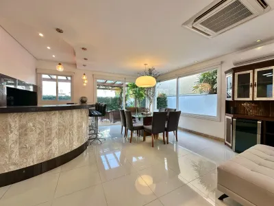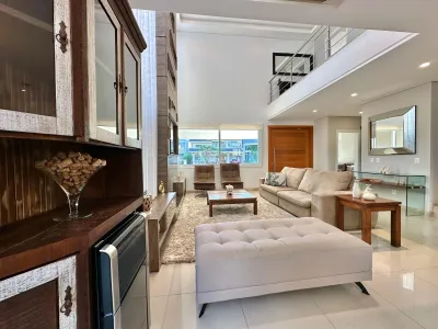 Sobrado com 280,00m² distribuídos em 4 suítes, sendo uma térrea e uma com hidro , living 2 ambientes com lareira, lavabo, cozinha americana com espaço gourmet , área de serviço com acesso externo, pátio com varanda com deck , mobiliada