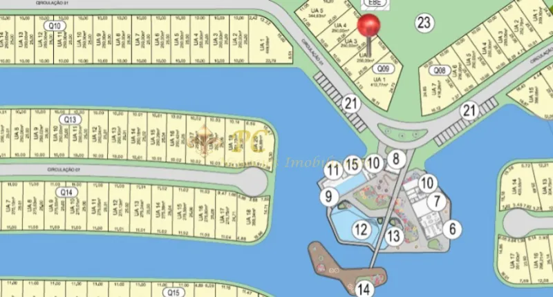 Terreno frente lago com 250m2 em ótima localização, orientação solar, frente Oeste, com uma linda área verde ao fundo.