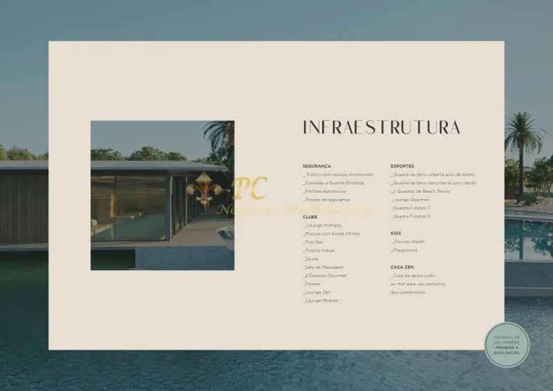 Academia, Piscina, Piscina Infantil, Sauna Úmida, Campo de Futebol, Campo de Futebol 7, Quadra de Tênis, Espaço Kids, Lounge, Playground, Portaria 24h, Sistema de Segurança, Lago,