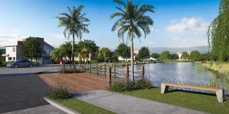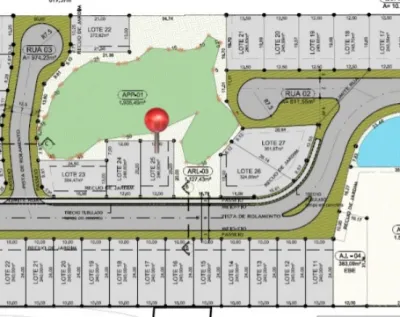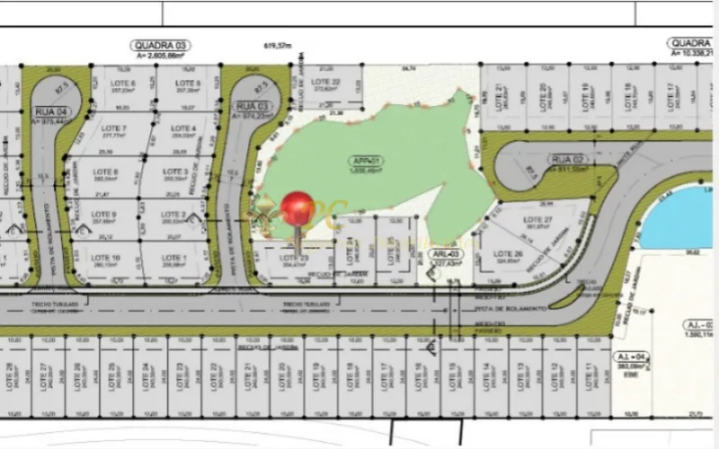 Belo terreno de esquina com 304m², frente oeste e sul, com área verde a lateral.