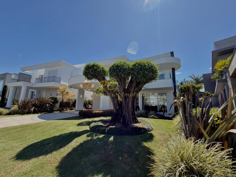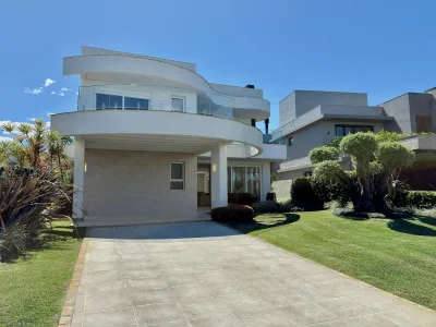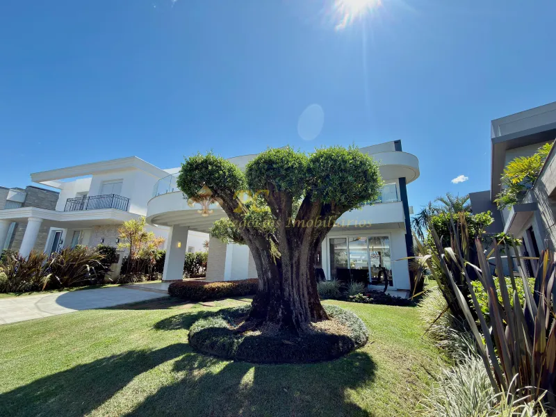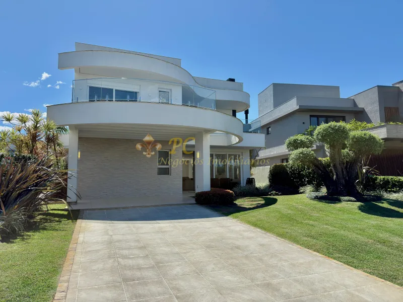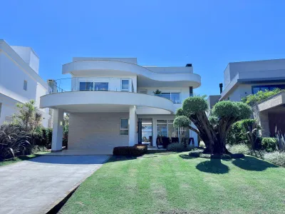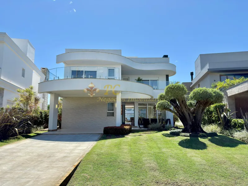 Casa beira lago no Condomínio Enseada, com 4 suítes, banho social, living integrado com lareira, piscina.
