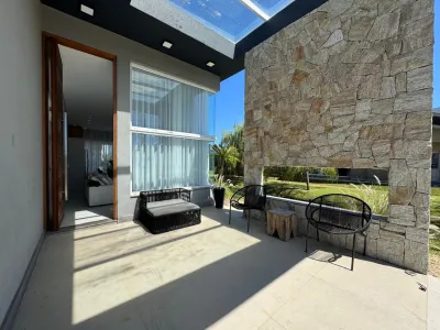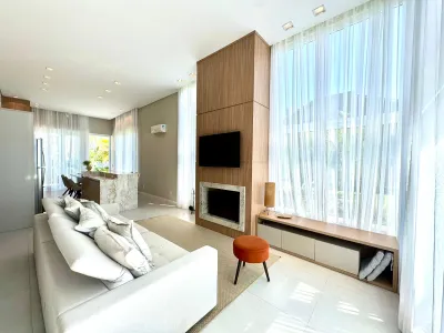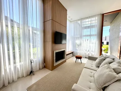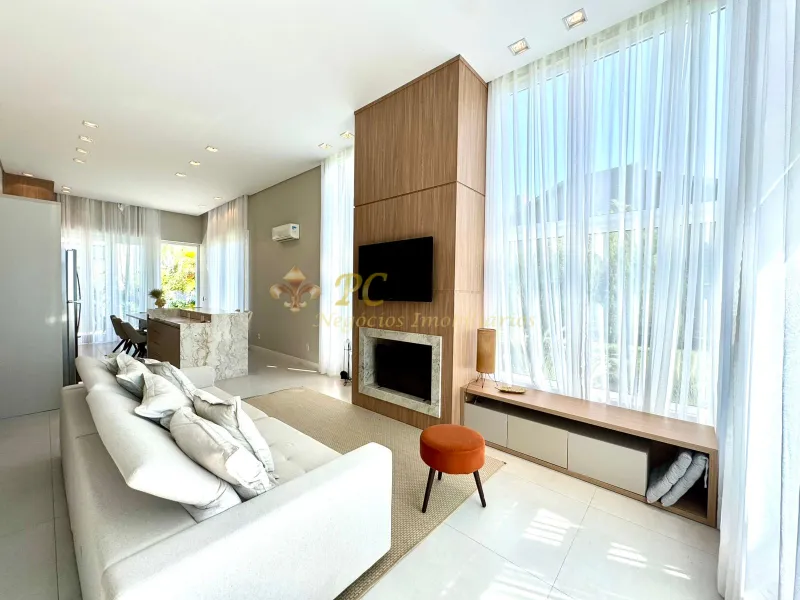 Casa térrea, beira lago no Condomínio Blue, com 4 suítes, mobiliada, Persianas motorizadas, piscina, toldo elétrico. 155m² privativos e 292,33m² totais, orientação solar frente leste.