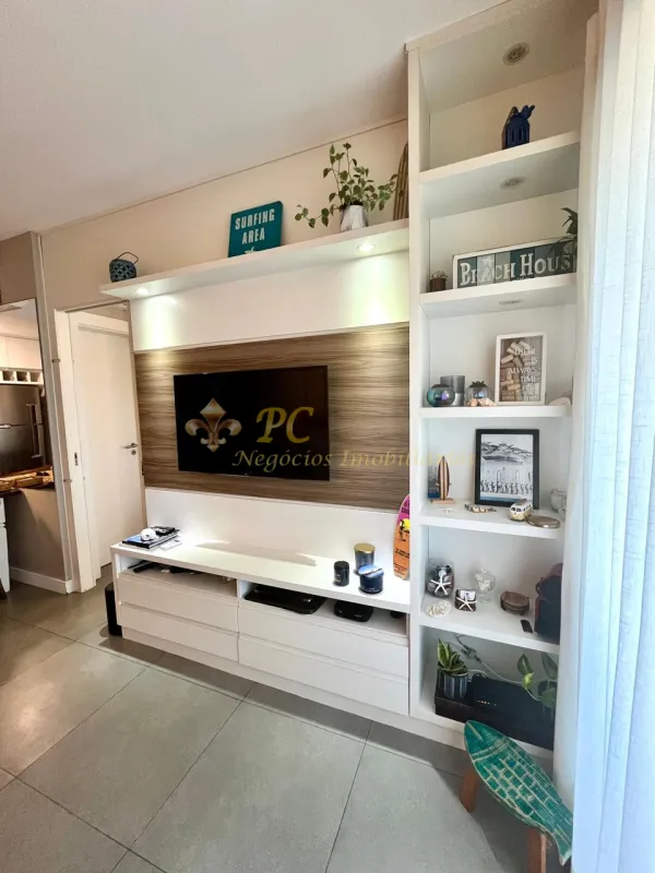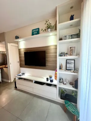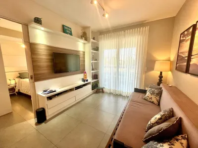 Apartamento no Condomínio Rossi com 1 dormitório, banheiro, living, sacada fechada, churrasqueira, cozinha, lavanderia, 1 vaga, 51m² privativos, orientação solar frente leste.