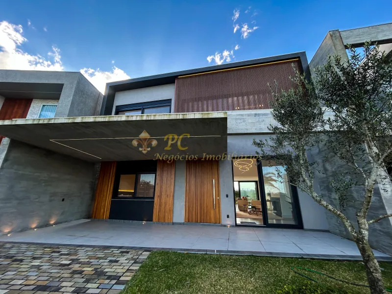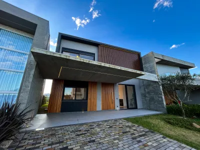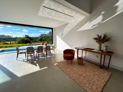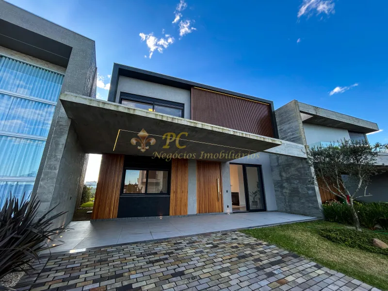 Casa com 4 suítes, sendo uma delas com closet, living em dois ambientes com lareira, lavabo, cozinha americana com churrasqueira, banheiro para piscina, lavanderia, depósito e abrigo para dois carros. Conta com vista privilegiada para o lago e fundos para área verde, totalmente mobiliada e iluminada, com piscina em deck de pedra Solarium e paisagismo completo.
