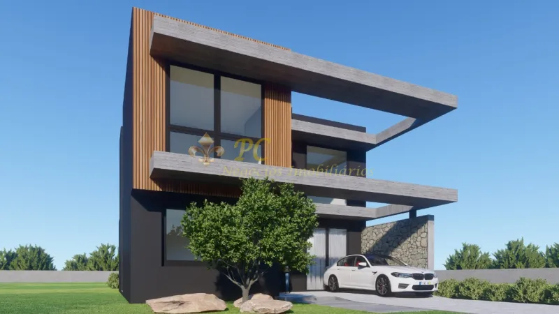 Casa com 4 suítes, sendo uma delas com closet, estar íntimo com vista para o lago, living em dois ambientes com lareira, lavabo, cozinha americana com churrasqueira, lavanderia e abrigo para carros. Possui vista para o lago e para o clube, além de paisagismo completo.
