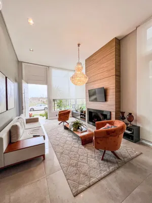Churrasqueira, Lareira, Lavabo, Mobiliado, Área de Serviço, Jardim, Piscina, Portaria, Ar Condicionado, Móveis sob medida, Posição Leste, Piso Porcelanato, Vista para o rio, Cozinha,