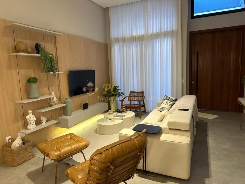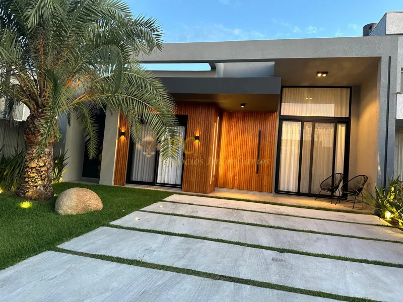 Casa no condomínio Blue, com 4 suítes independentes, living integrado, cozinha com churrasqueira, mobiliada e decorada. 170m².