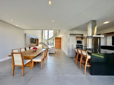 Lindo sobrado mobiliado, com design contemporâneo e excelente padrão de acabamento. Composto por 04 suítes independentes, sendo 01 suíte térrea, living com 02 ambientes integrados à lareira, lavabo social, cozinha integrada com churrasqueira, lavanderia e lavabo auxiliar. Possui vaga para 02 carros e está localizada em um dos condomínios mais completos e valorizados de Xangri-Lá, com ampla infraestrutura de lazer e segurança 24h.