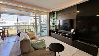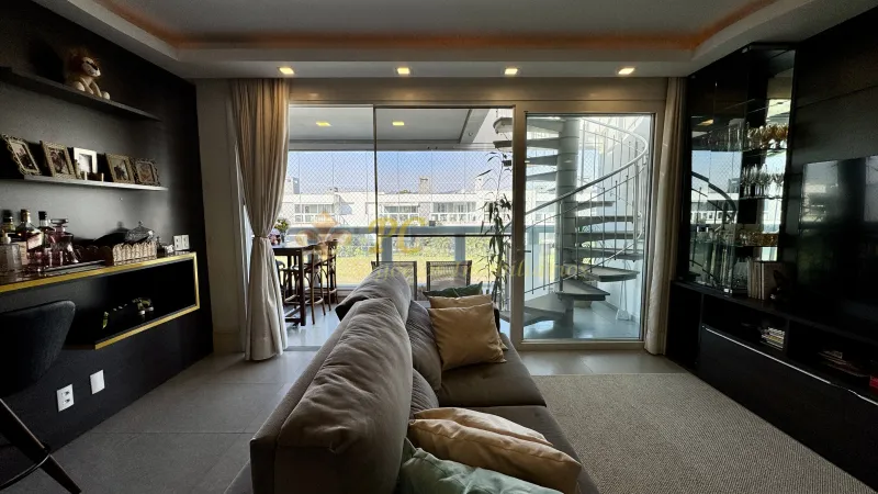 Cobertura mobiliada e com vista para o lago, Mobiliada, pronta pra uso, 2 dormitórios (sendo 1 suíte), 1 banheiro social, Living com lareira ecológica, Cozinha americana, Lavanderia separada, Sacada beira lago com churrasqueira, 2 vagas de garagem (1 coberta), No terraço, pergolado com cobertura de vidro, espaço gourmet com churrasqueira e banheira, 148m² privativos, orientação solar frente oeste.