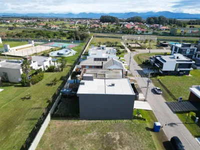 Sobrado no Condomínio Sunset, com 4 suítes, living 2 ambientes com lareira, cozinha e espaço gourmet com churrasqueira, lavabo, área de serviço.