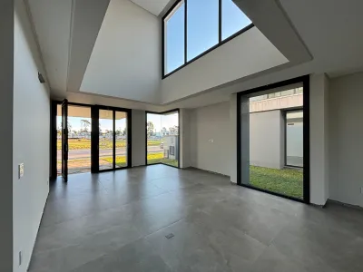 Churrasqueira, Lareira, Lavabo, Área de Serviço, Laje de Concreto, Alvenaria, Terreno Plano, Piso Porcelanato, Acabamento em gesso, Espera para água quente, Sala de TV, Sala de Estar, Sala de Jantar, Cozinha, Sem Mobília,