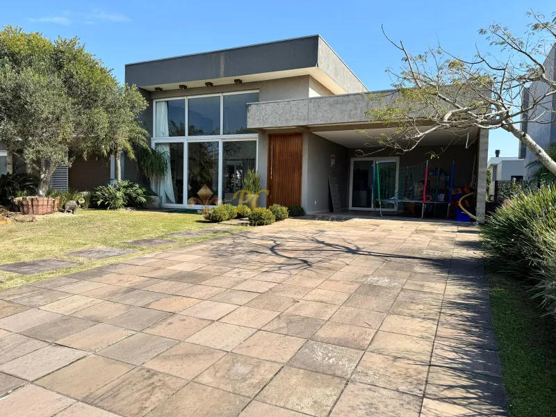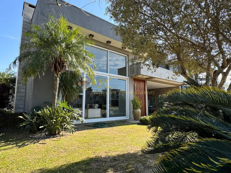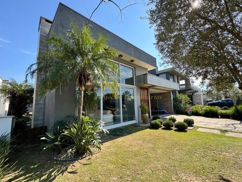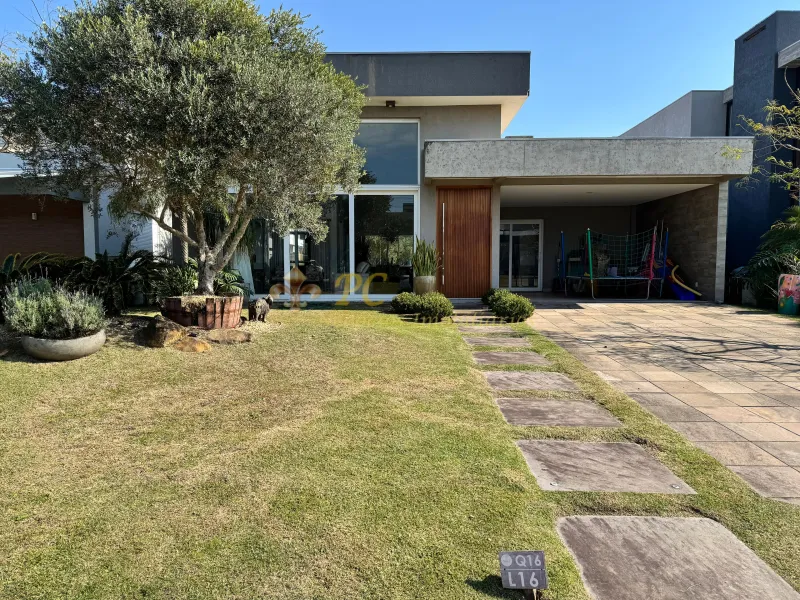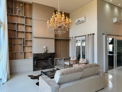 Casa no Condomínio Dubai toda mobiliada, 04 suítes, living doias ambientes, lavabo, cozinha americana com churrasqueira, lavanderia, área gourmet com churrasqueira, fogão a lenha, garagem coberta para dois carros e aberta para quatro carros e 218m² privativos.