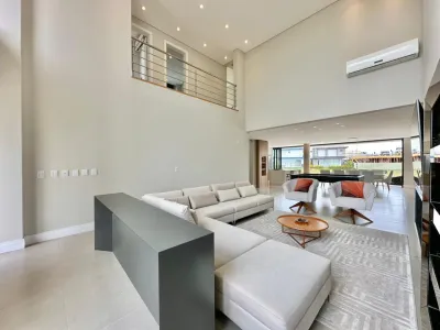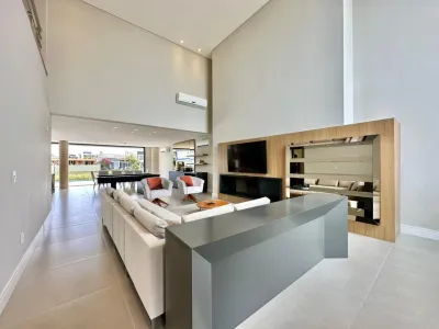 04dormitórios ( 02 suítes ), Lago principal, Lavabo, Banheiro socia, Posição solar norte, Beira lago, Cozinha equipada, Mobiliado & Decorado, Living de 3 ambientes, Área de serviço, 357 M² área privativa, Banheira com vista para o lago e hidromassagem, Automatizada, Garagem para 2 carros, Piscina de concreto.