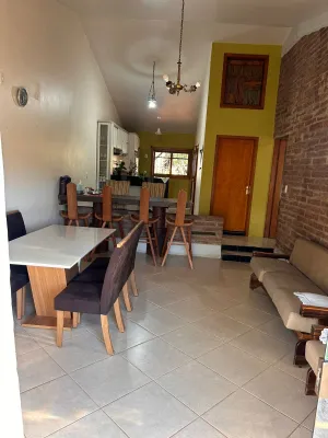 Casa com 3 dormitórios, sendo 1 suíte. Possui cozinha com móveis sob medida, sala de estar e jantar, fogão a lenha, churrasqueira, banheiro social, lavabo, lavanderia e quiosque com piscina. Conta com pátio frente e fundos e vaga de garagem coberta. São 184,50 m² de área construída em um terreno de 456,00 m² (12 x 38). Localizada a apenas uma quadra da escola, creche e posto de saúde.