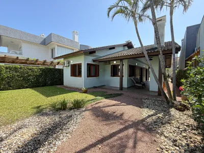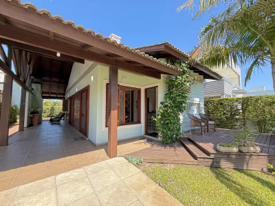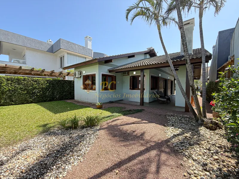 Casa no Condomínio Condado de Capão composto por 02 dormitórios sendo 01 suíte, Banheiro social, Lavanderia, Garagem coberta para 2 carros, Mobiliada e decorada, Ambientes climatizados, 300 m² total, 124 m² área construída, orientação solar frente oeste/leste. Condomínio com infraestrutura completa.