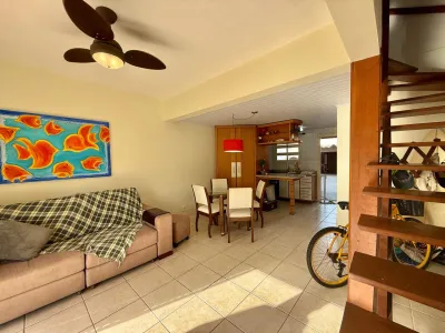 Duplex no Residencial Veneza em Rainha do Mar composto por 2 dormitórios, banheiro social, lavabo, living integrado, ar condicionado, churrasqueira, vaga para carro, 64m².