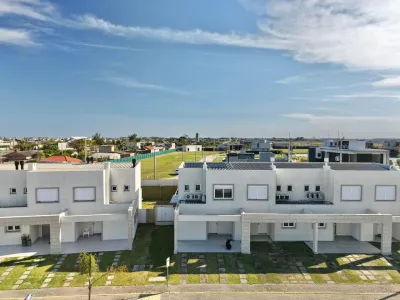Casa no Condomínio Pateo Marbella composta por 3 dormitórios, sendo 1 suíte, lavabo interno, mais lavabo externo para apoio, mobiliado e decorado, salada de estar, jantar e cozinha completa, piscina partilhada e aquecida, iluminação bluetooth, externa com pedra térmica ambientada, 100% rebaixada em gesso, ar condicionado e aquecedor instalados, vaga para 2 carros, orientação solar frente norte, 114,78m² privativos e terreno com 241,81m².