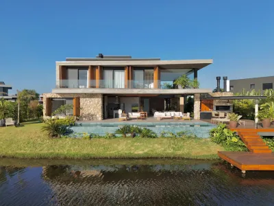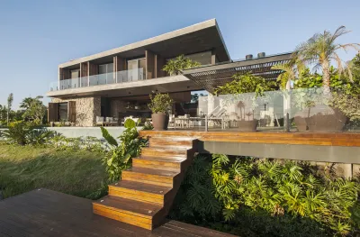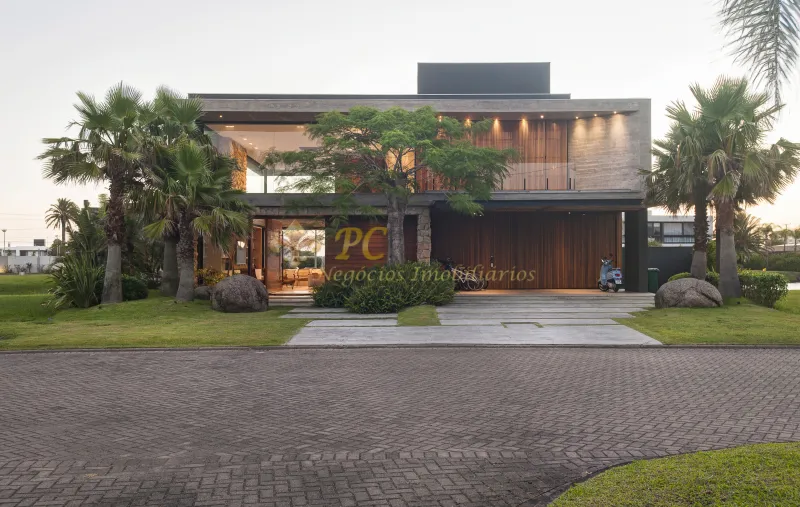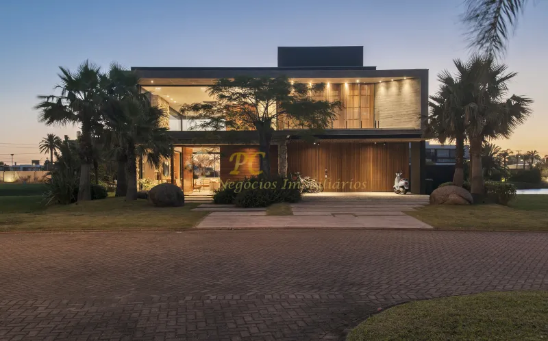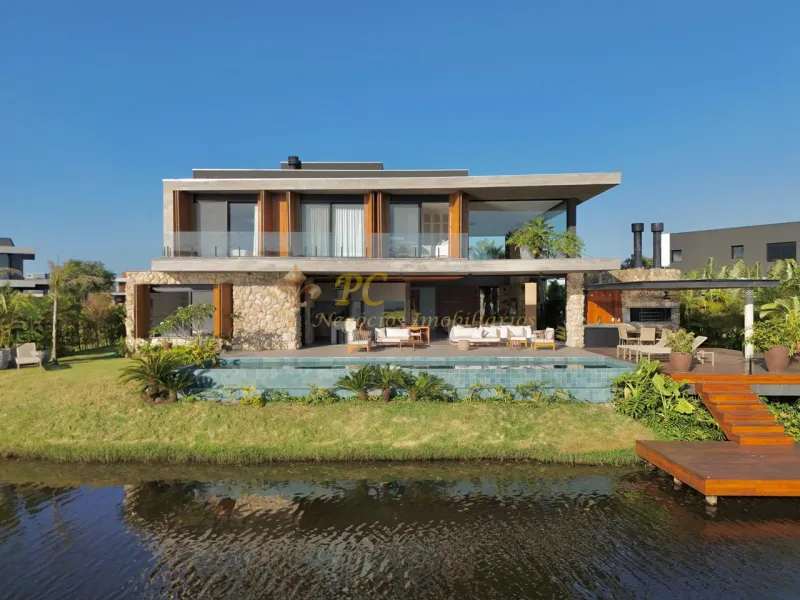 Sobrado beira lago no Condomínio Sense com 05 amplas suítes, todas climatizadas, com orientação Nordeste para aproveitar a iluminação natural e uma vista encantadora do pôr do sol sobre o lago. A residência possui 514 m² privativos, elevador, piscina com borda infinita junto ao quiosque Gourmet, em um lote e meio totalizando 752 m² e também próximo ao clube de lazer do condomínio.