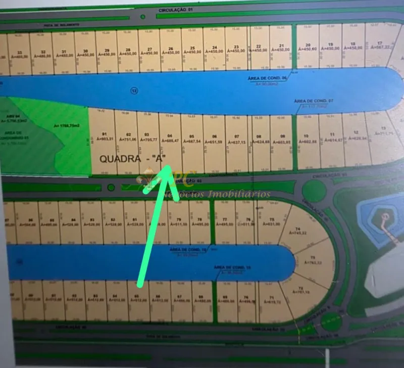 Terreno beira lago no Condomínio Seasons com orientação sol.ar frente sul e 686,47m² totais.