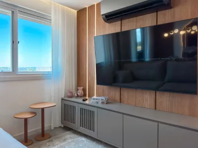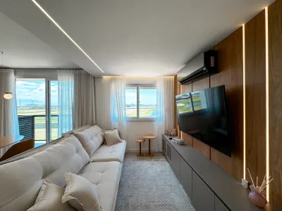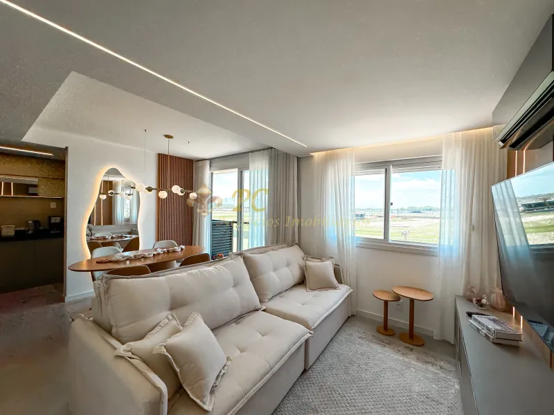 Apartamento no Thera Santorini com 3 dormitórios, sendo 1 suíte, Mobiliada, Sacada, Churrasqueira, Cozinha planejada, Área privativa 74,28m², Área total 119,77m², 1 box duplo de garagem.