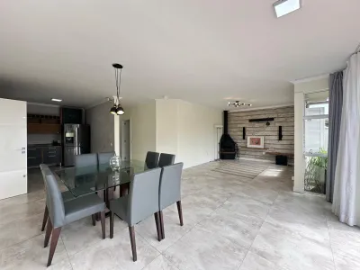 Casa próxima do mar na Praia do Remanso com orientação solar frente leste, 3 dormitórios, sendo 2 suítes, banheiro social, living amplo e integrado, quiosque com churrasqueira, forno de pizza e lavabo, 159m² de construção, terreno de 360m², pátio com piscina, pergolado externo.