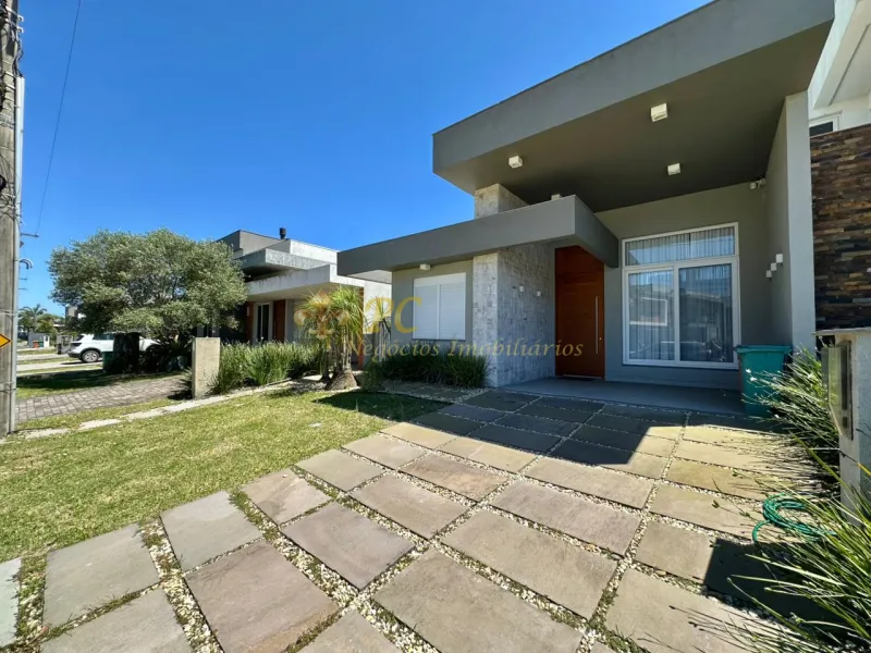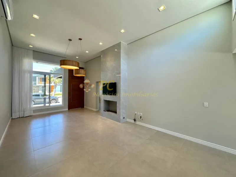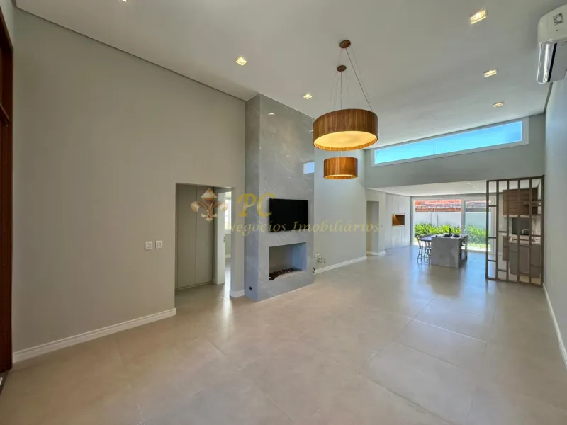 Casa no Condomínio Blue, perto do clube, são 3 suítes, estar e jantar integrados com lareira a gás, cozinha com churrasqueira, lavabo, lavanderia, parcialmente mobiliada, ar condicionado em todas as peças, 145m² de área construída.