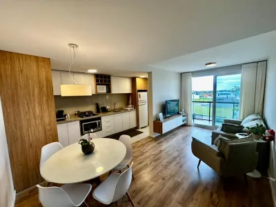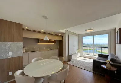 Apartamento novo, mobiliado, composto de 2 dormitórios (1 suite), banho social, living 2 ambientes, cozinha integrada com churrasqueira, lavanderia, sacada, box para carro, edificio completo, com porteiro eletronico, piscina adulta e infantil, salão de festas, academia, espaço kids, 2 elevadores, baixo custo condominial.