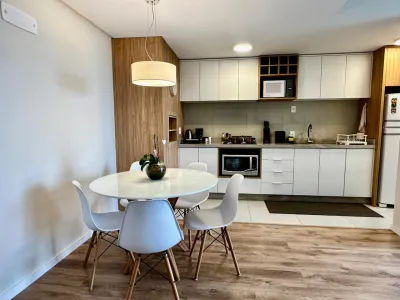 Churrasqueira, Lavanderia, Mobiliado, Sacada, Portaria, Ar Condicionado, Box, Posição Sul, Água Quente, Acabamento em gesso, Espera para Split,