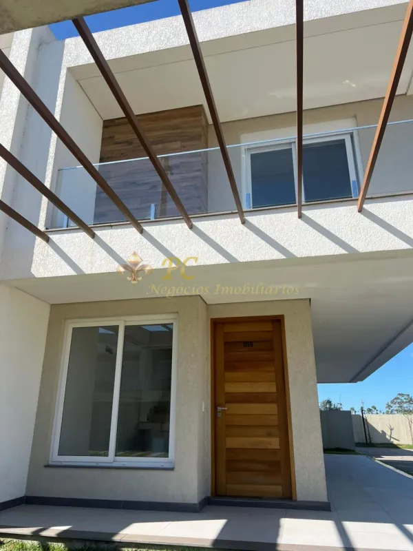 Sobrado de esquina no Condomínio Murano em Capão da Canoa, são 3 dormitórios sendo 1 suíte, estar e jantar integrados, lavabo, cozinha, lavanderia, pátio fechado, nunca habitado, espera para split, espera para água quente, perto do clube, vista para a prainha, 138m² privativo e 87,39m² de pátio.