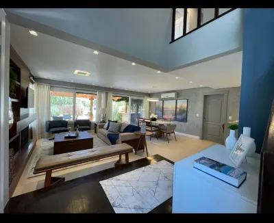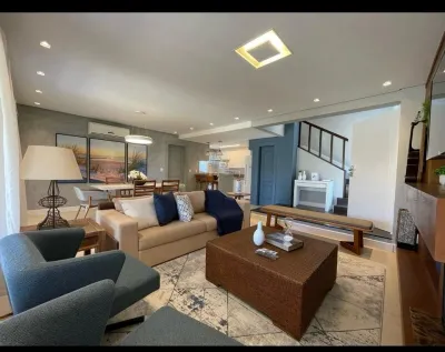 Sobrado com 04 suites, sendo 01 terrea, lavabo, Spa, piso aquecido, Parrileira, lareira, cozinha americana, living 2 ambientes, mobiliada.