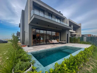 O imóvel conta ainda com piscina em concreto, banheiro auxiliar externo, paisagismo cuidadosamente planejado, abrigo para veículos e esquadrias automatizadas, proporcionando conforto, sofisticação e praticidade em todos os ambientes. Área privativa de 235,83 m² .